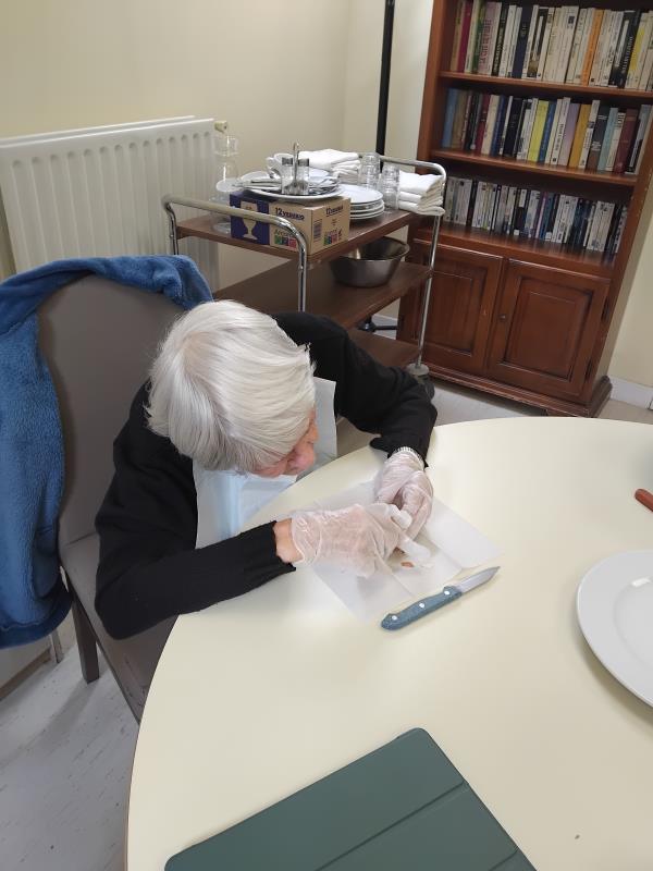 Une belle participation de chacun. Au menu: œufs mimosa et tarte tatin confectionnés par les résidents eux-même.
