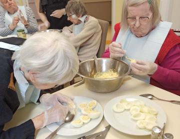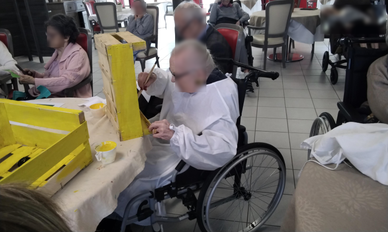 Des ateliers de Pâques sont en cours de réalisation pour le jour J. Les résidents s'investissent dans les décorations sur différents ateliers manuels. Des peintures ont également été réalisés sur les baies vitrées. Elles sont magnifiques !