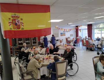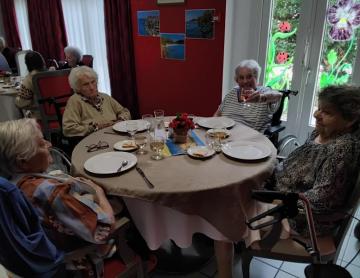 Nous sommes rassemblés comme chaque vendredi matin pour poursuivre nos différents projets en laine. Certains réalisent notamment un projet commun en faisant un patchwork de carrés de laine, tandis que d'autres font du tissage en cercle.