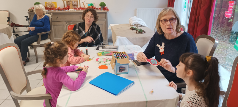 Pour ceux qui préféraient une activité plus calme, un atelier manuel était également proposé. Les enfants ont ainsi pu laisser libre cours à leur créativité en confectionnant de jolies cartes de vœux et de petites décorations pour le sapin.