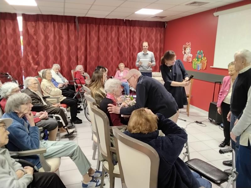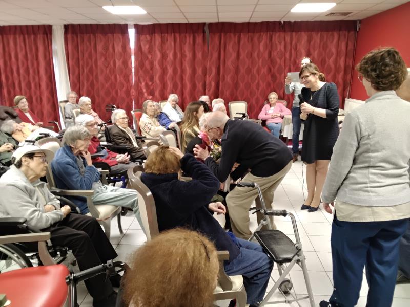 Nous avons été nombreux pour fêter les cent ans de Mme Zwickert. Nous avons passé un très bon moment avec la diffusion en images de sa vie. Merveilleux moment de partage en présence de sa petite-fille et de ses arrière-petits-enfants.