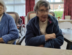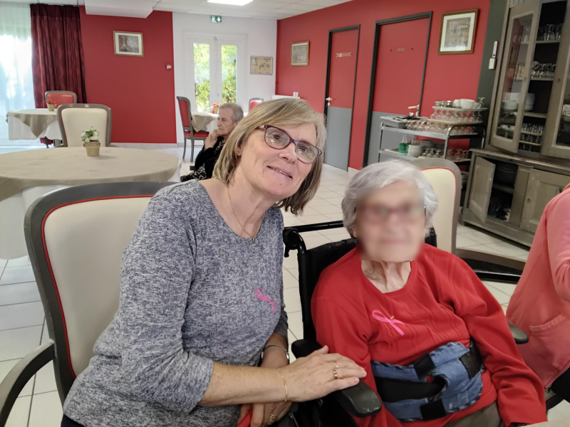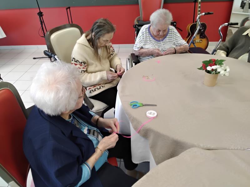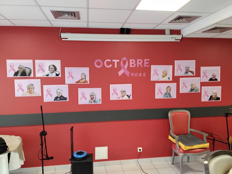 À l'occasion du mois dédié à la prévention du cancer du sein chez les femmes, nous avons confectionné nos rubans que nous distribuons à chaque résident et membre du personnel qui le souhaite. Nous avons également réalisé des portraits que nous avons affichés sur le mur de la salle de restauration. Beau moment de solidarité !