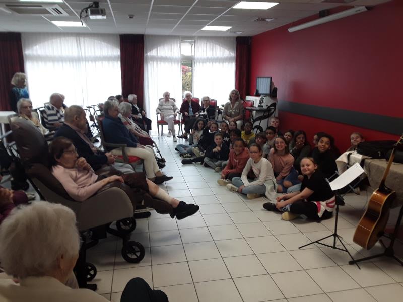 C'est toujours un bonheur de recevoir des enfants dans la résidence. C'était le cas vendredi 14 avril. Nous avons accueilli la classe de CM1-CM2 de l'école de Trie-Château pour notre répétition chorale. Nous préparons activement le spectacle de fin d'année avec l'ensemble des élèves de maternelle et primaire de Trie-Château. Les enfants ont même eu la gentillesse de réaliser des dessins remis aux résidents.